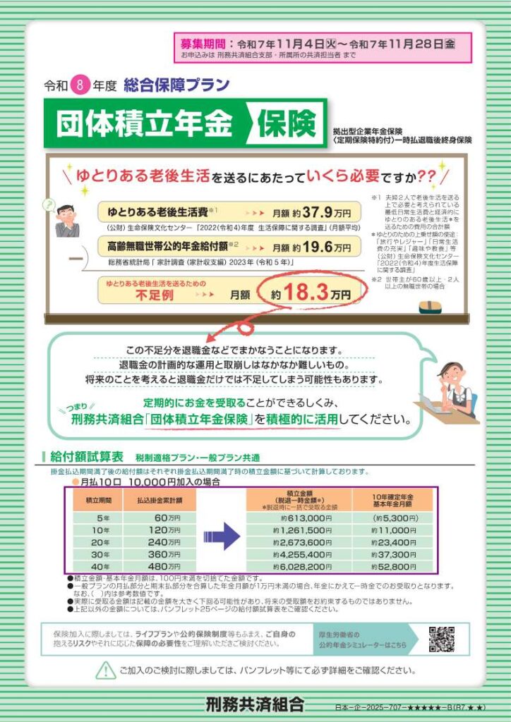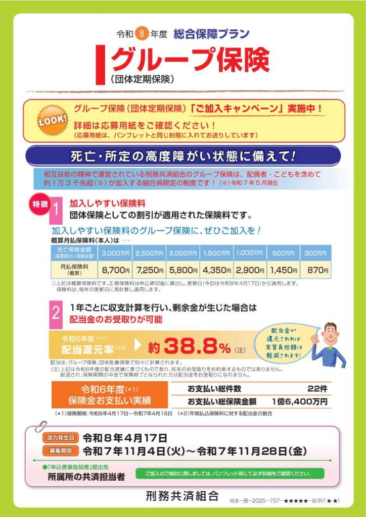 ※保障内容等の詳細については、募集時にお配りするパンフレットにてご確認ください。